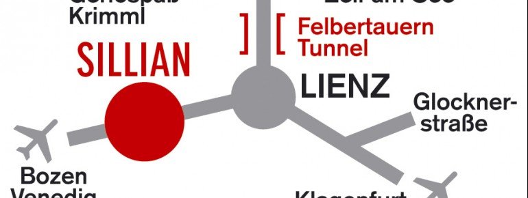 Aus Richtung München kommend geht es über die A8 nach Rosenheim und von dort auf der A93 weiter nach Kufstein. Dort nimmst du die B173 und hältst dich anschließend links auf die B178. Verlasse diese an der Abfahrt Pass-Thurn-Straße und bleibe für etwa 36 Kilometer auf der B161, bis du an den Kreisverkehr Felbertauern Straße kommst. Diesen verlässt du an der zweiten Ausfahrt und folgst der B108 bis nach Lienz. Dort folgst du der Beschilderung nach Sillian. Das Hotel befindet sich direkt im Zentrum, an der Talstation der Bergbahnen.