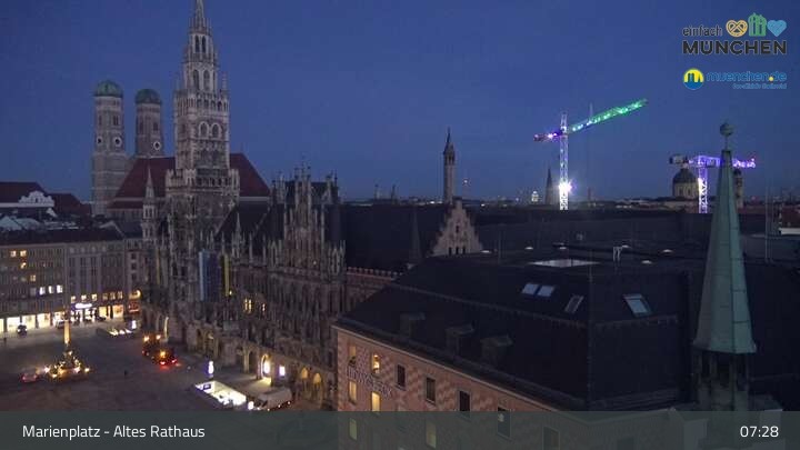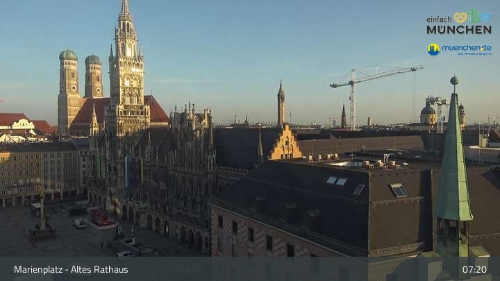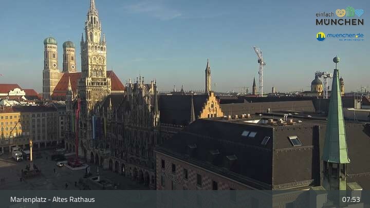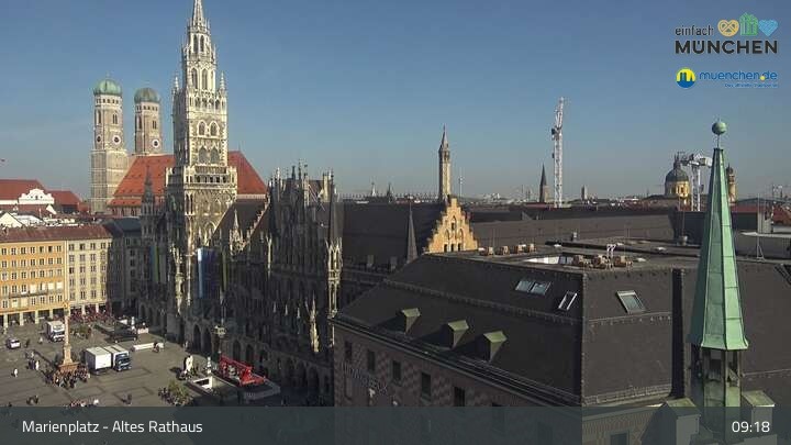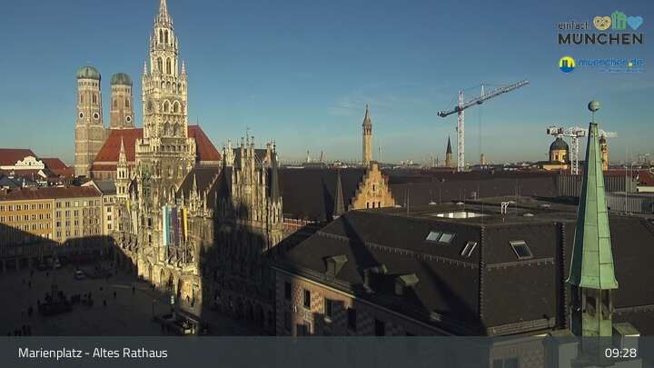 Die Webcam blickt vom Alten Rathaus auf den Marienplatz, der zentrale Platz der Münchener Innenstadt.
