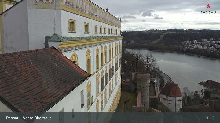 Die Webcam zeigt einen tollen Panoramablick von der Veste Oberhaus auf die Donau und die Altstadt von Passau. Neber der herrschaftlichen Burgfassade sieht man sehr gut die Landzunge zwischen Donau und Inn, auf der die Altstadt mit ihren denkmalgeschützten Häusern liegt. Gut zu erkennen sind unter anderem die Ortspitze am Zusammenfluss der drei Flüsse, das an der Donau liegende Rathaus, der weiße Dom St. Stephan und das erhöhte Kloster Mariahilf in der Innstadt.