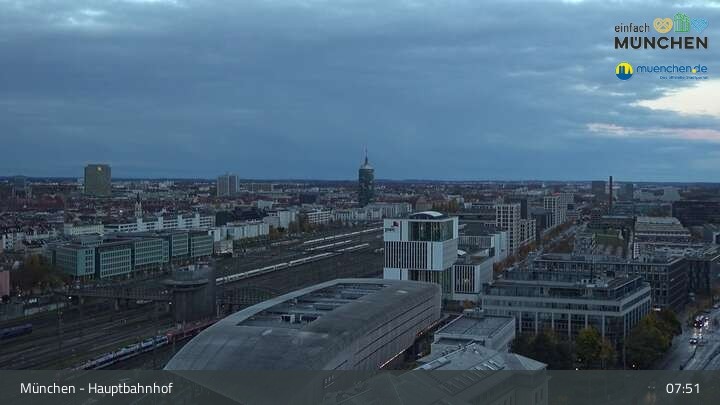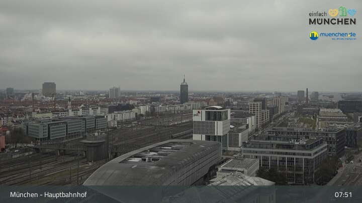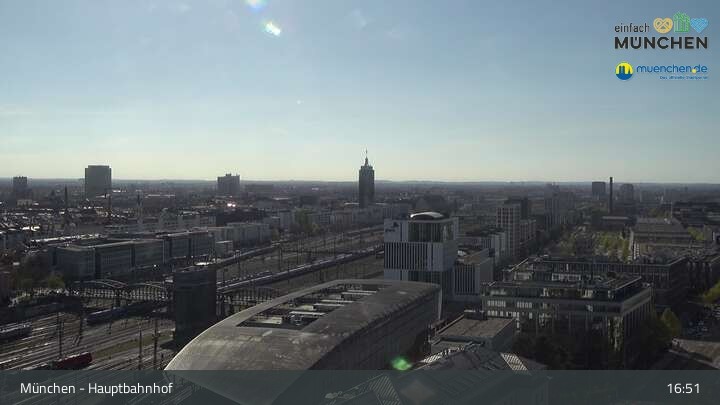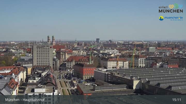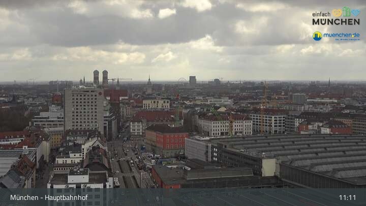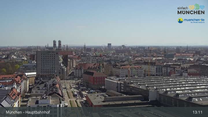 Diese Webcam zeigt dir einen Livestream über die Dächer von München, der Landeshauptstadt von Bayern und eine der größten Städte Deutschlands. Zu sehen ist das Areal des Hauptbahnhofes.