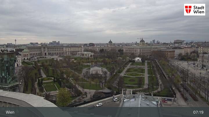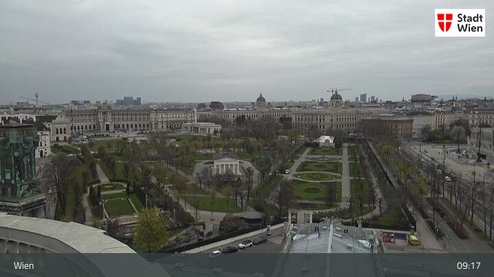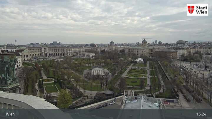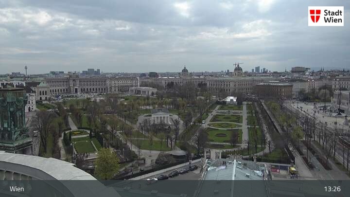 Die Webcam bietet dir einen Rundumblick über den ersten Wiener Bezirk. Du siehst das Burgtheater und das Rathaus.