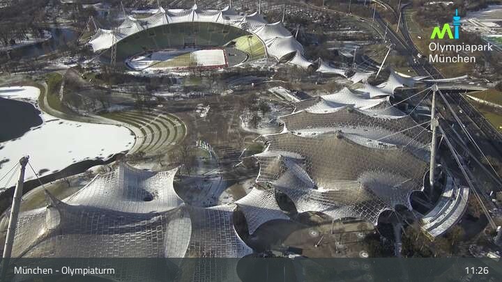 Im nordwestlichen Teil der Münchner Innenstadt befindet sich am Olympiaturm diese Webcam mit dem direkten Blick auf den Olympiapark. Zu sehen sind unter anderem das Olympiastadion und die Olympiahalle, beliebte Orte für Veranstaltungen und Konzerte. Wichtiger Hinweis: Bei großen Veranstaltungen kann es sein, dass die Webcam vorübergehend deaktiviert wird.
