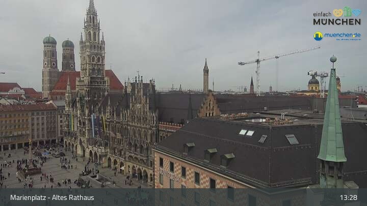 Die Webcam blickt vom Alten Rathaus auf den Marienplatz, der zentrale Platz der Münchener Innenstadt.