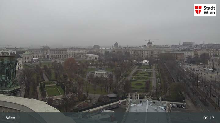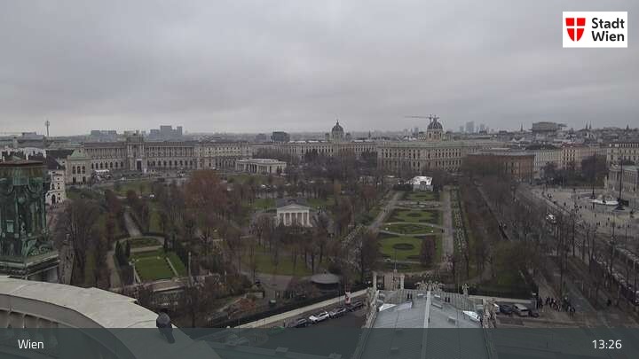 Die Webcam bietet dir einen Rundumblick über den ersten Wiener Bezirk. Du siehst das Burgtheater und das Rathaus.