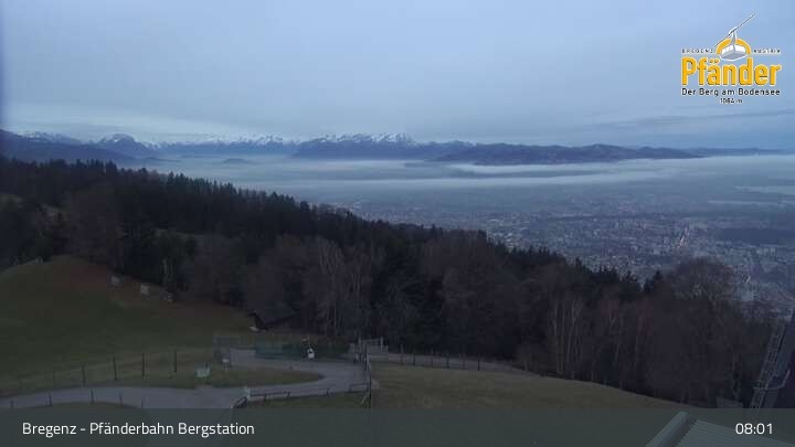Die Video-Webcam zeigt einen traumhaften Panoramablick von der Bergstation am Pfänder hinunter auf den Bodensee und die Stadt Bregenz.