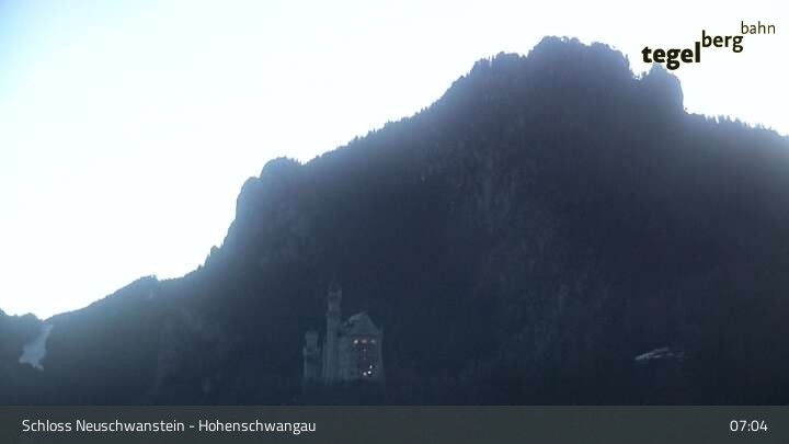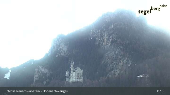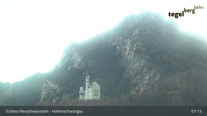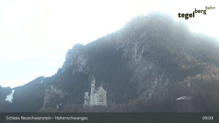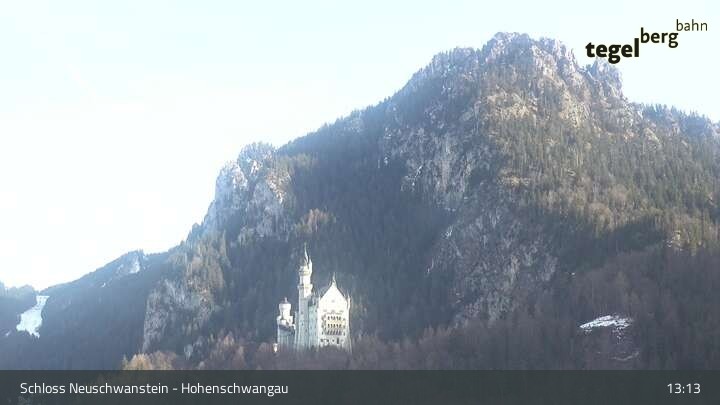 Die Kamera befindet sich am Schloss Hohenschwangau und schwenkt vom Schloss Neuschwanstein zum Museum der Bayerischen Könige.