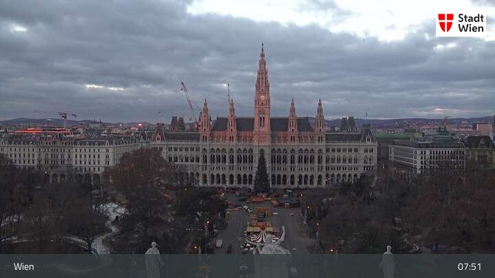 Die Webcam bietet dir einen Rundumblick über den ersten Wiener Bezirk. Du siehst das Burgtheater und das Rathaus.
