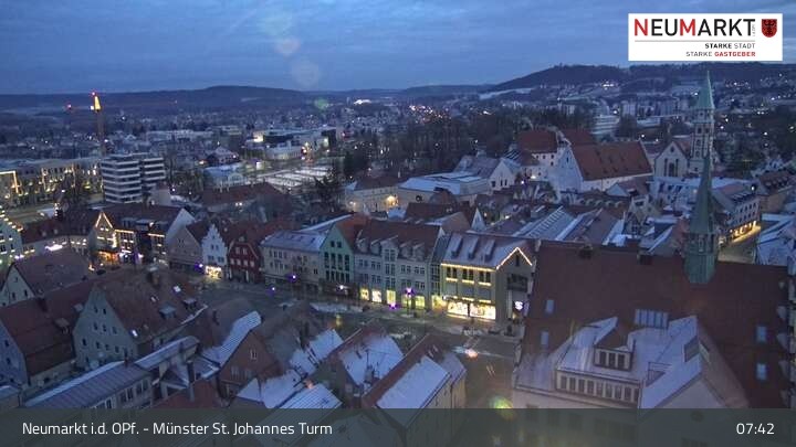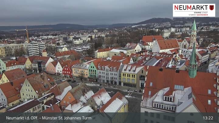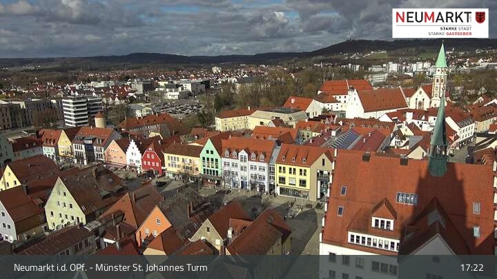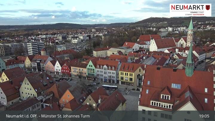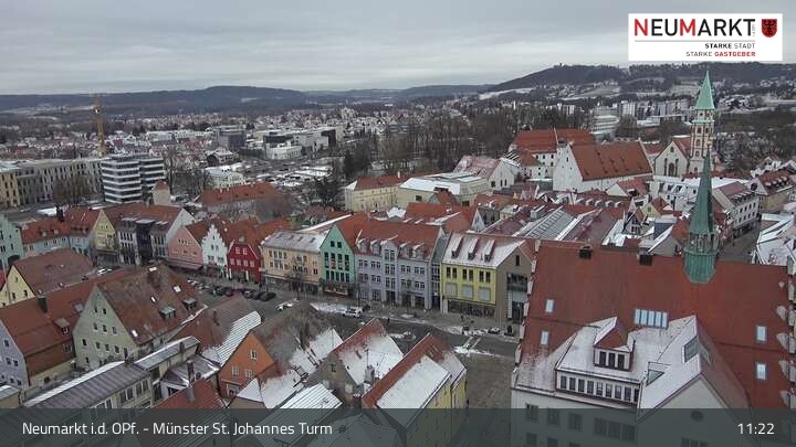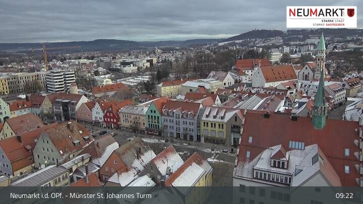 Die Webcam befindet sich am Turm der St. Johannes Kirche in Neumarkt in der Oberpfalz und zeigt einen tollen Panoramablick über die Stadt.