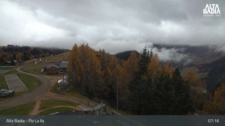 Zu sehen ist die Bergstation des Sessellifts Bamby am Piz La Ila mit Blick zum Marmolada Gletscher