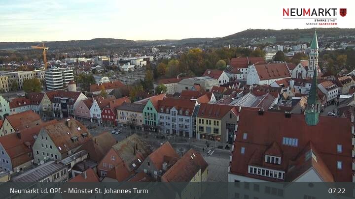 Die Webcam befindet sich am Turm der St. Johannes Kirche in Neumarkt in der Oberpfalz und zeigt einen tollen Panoramablick über die Stadt.