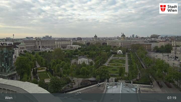 Die Webcam bietet dir einen Rundumblick über den ersten Wiener Bezirk. Du siehst das Burgtheater und das Rathaus.