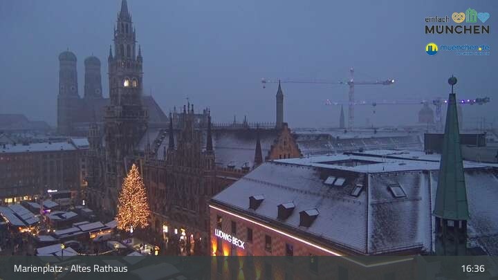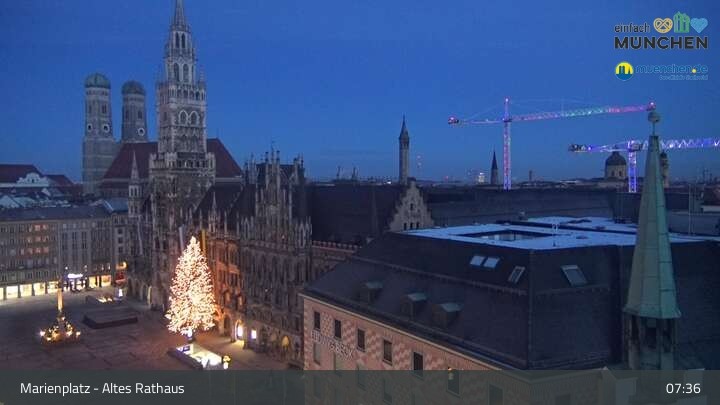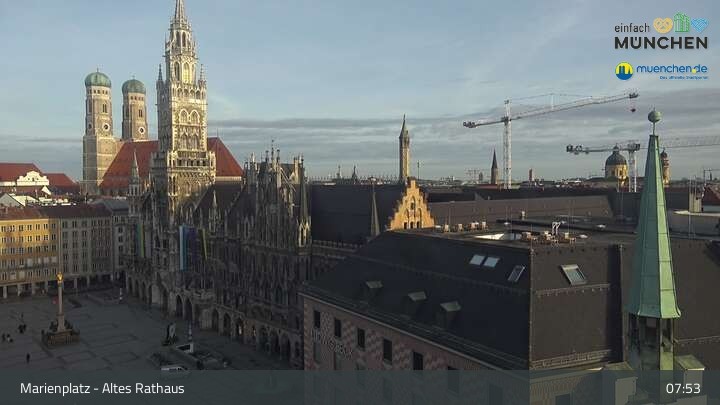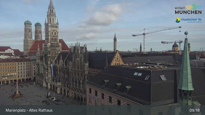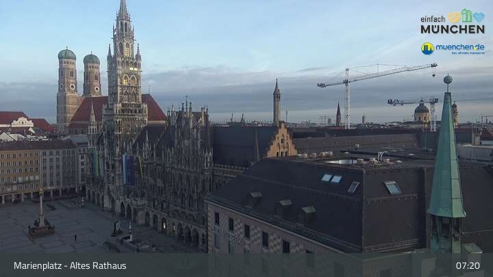 Die Webcam blickt vom Alten Rathaus auf den Marienplatz, der zentrale Platz der Münchener Innenstadt.