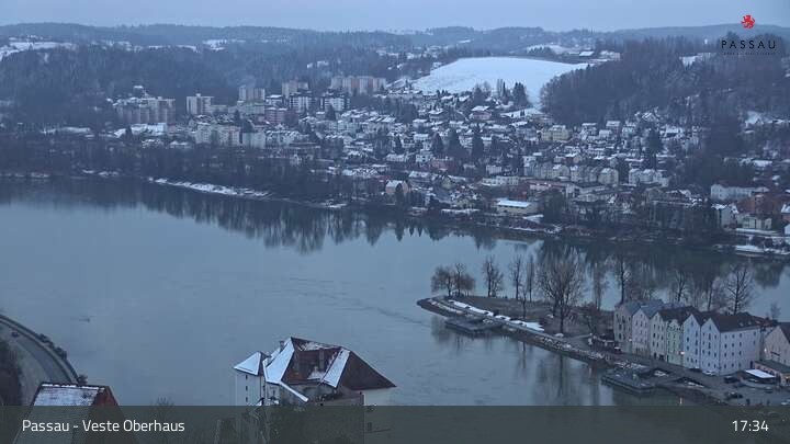 Die Webcam zeigt einen tollen Panoramablick von der Veste Oberhaus auf die Donau und die Altstadt von Passau. Neber der herrschaftlichen Burgfassade sieht man sehr gut die Landzunge zwischen Donau und Inn, auf der die Altstadt mit ihren denkmalgeschützten Häusern liegt. Gut zu erkennen sind unter anderem die Ortspitze am Zusammenfluss der drei Flüsse, das an der Donau liegende Rathaus, der weiße Dom St. Stephan und das erhöhte Kloster Mariahilf in der Innstadt.