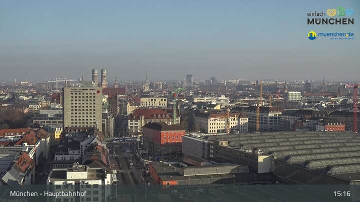 Diese Webcam zeigt dir einen Livestream über die Dächer von München, der Landeshauptstadt von Bayern und eine der größten Städte Deutschlands. Zu sehen ist das Areal des Hauptbahnhofes.