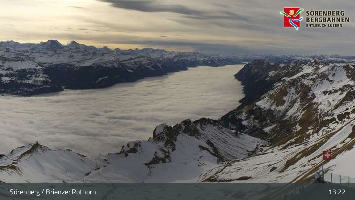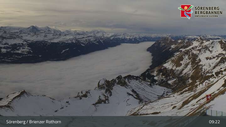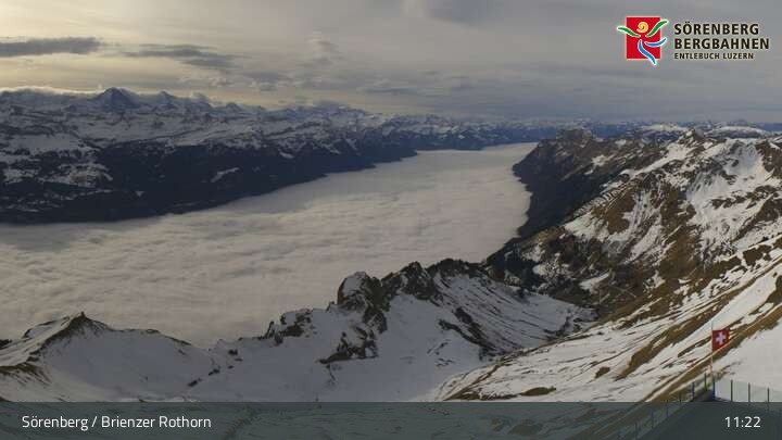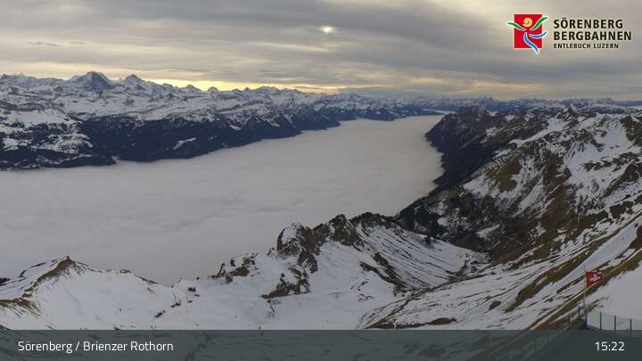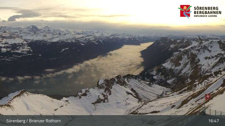 Die Webcam eröffnet dir den Blick vom 2.350 Meter hohen Rothorn zum Brienzersee.