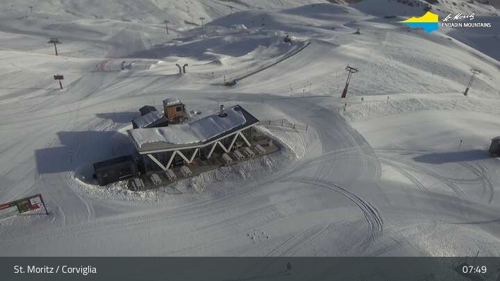 Hier siehts du die Pisten unterhalb der Chantrella Corviglia Bahn
