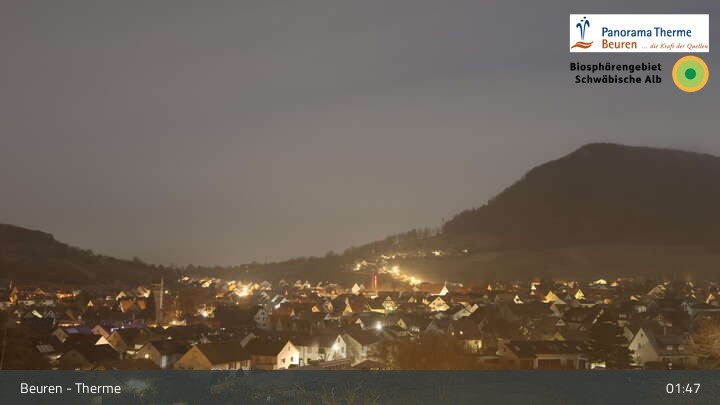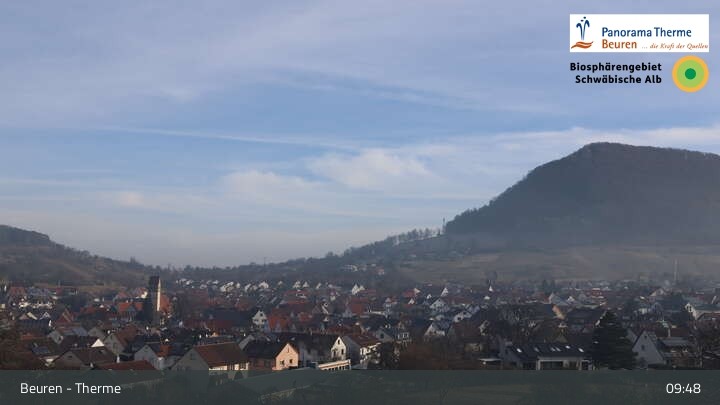 Blick über Beuren in der Schwäbischen Alb. Die Webcam befindet sich in der Panorama Therme Beuren.