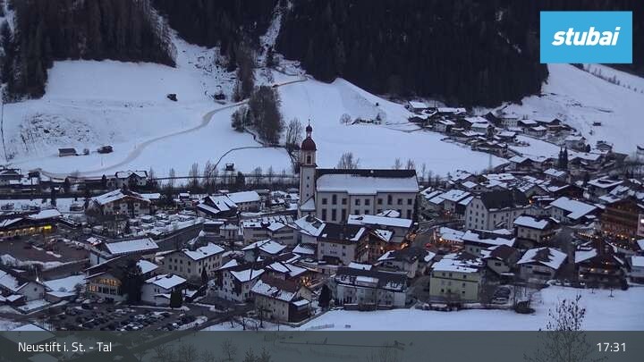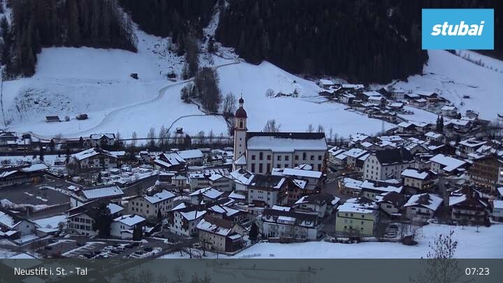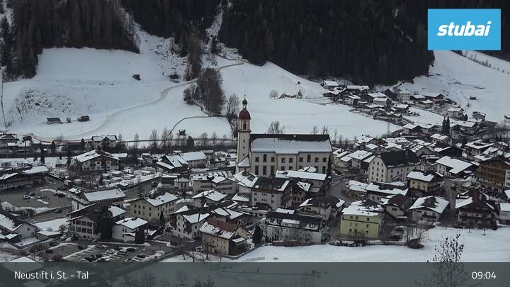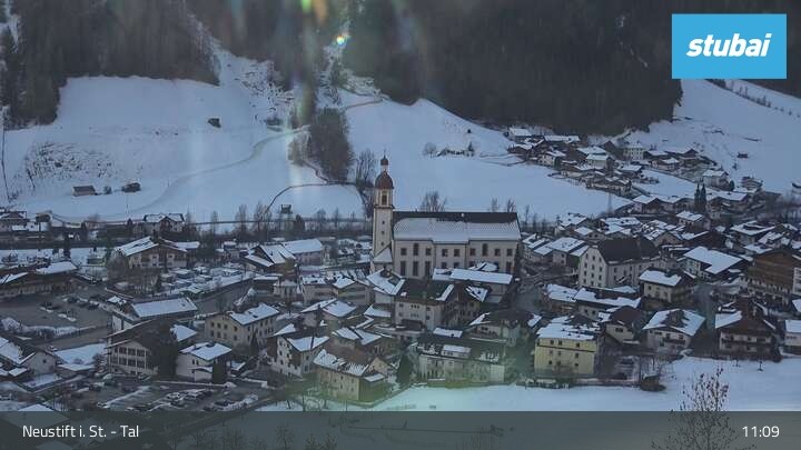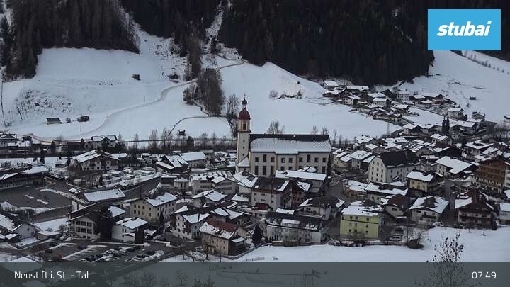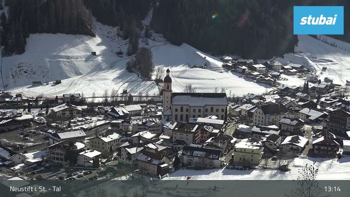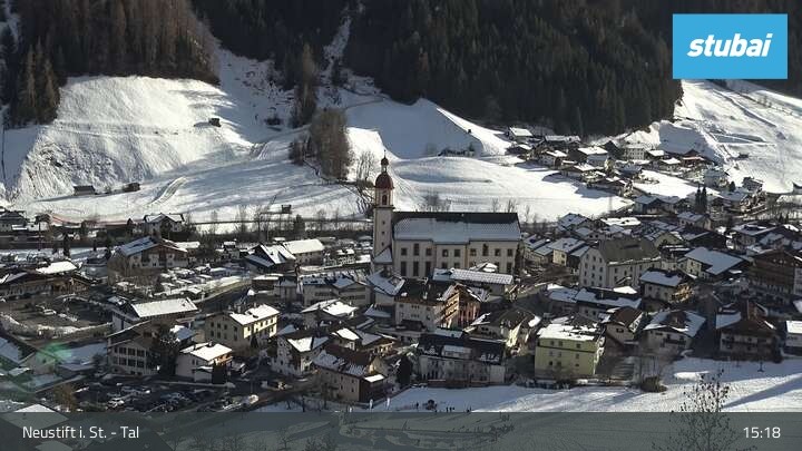 Die Webcam blickt auf den kleinen Ort Neustift im Stubaital.