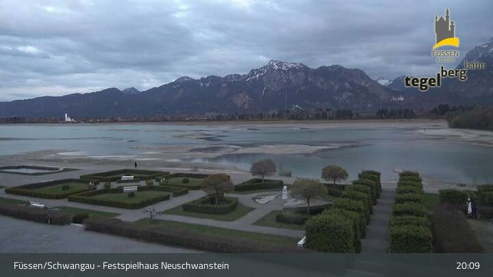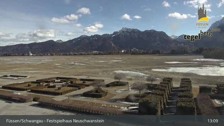 Die Webcam blickt auf den Garten von Ludwigs Festspielhaus in Füssen am Forggensee.