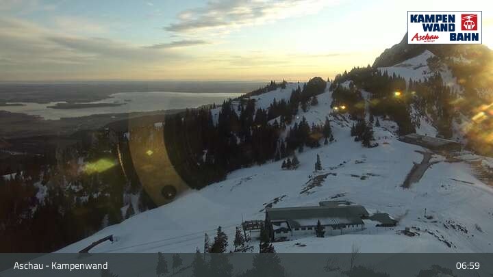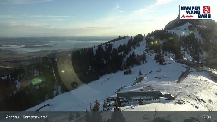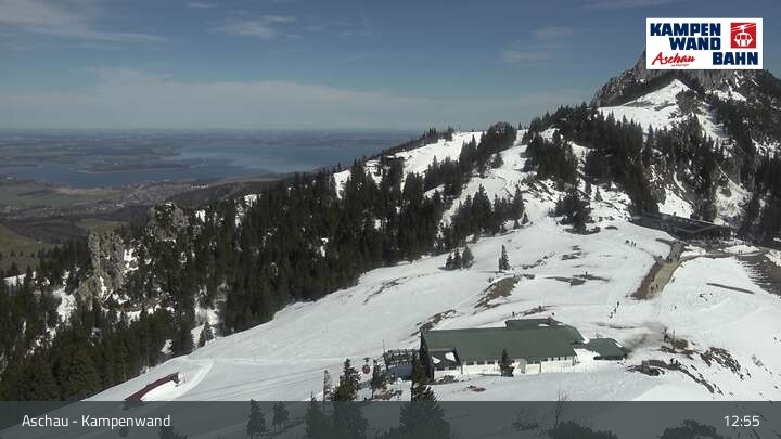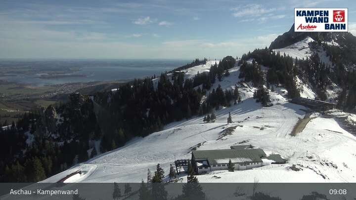 Die Webcam eröffnet dir einen Rundumblick von der Bergstation der Kampenwandbahn aus zur Sonnenalm und Roßleiten-Sessellift.