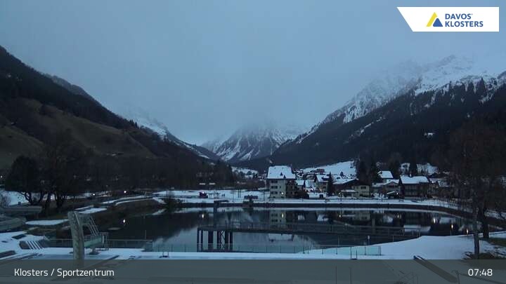 Hier siehst du das Sportzentrum und das Freibad in Klosters