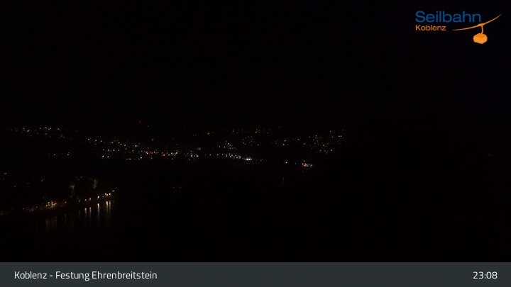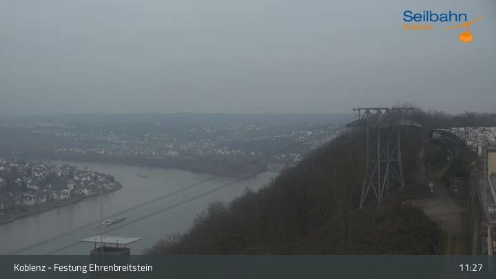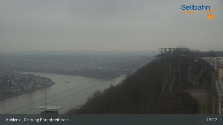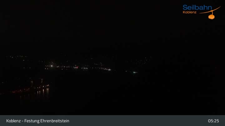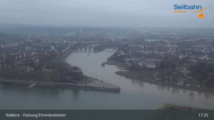 Webcam Koblenz: Blick von der Festung auf Seilbahn und Deutsches Eck, 160 m
