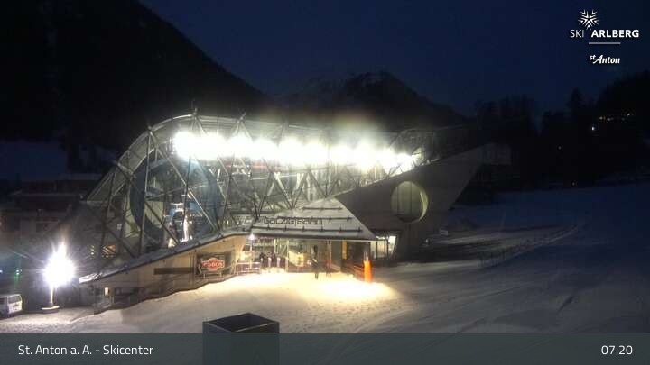 Diese Webcam zeigt dir den Blick vom Skicenter an der Talstation der Galzigbahn in St. Anton.