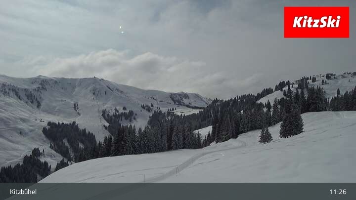 Die Webcam zeigt der den Blick vom Berghaus Walde am Hahnenkamm. Gut erkennen kann man unter anderem die Bergstation der Hahnenkammbahn.