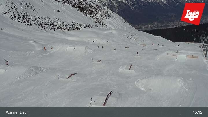 Die Webcam befindet sich an der Bergstation der Karleiten-Sesselbahn in der Axamer Lizum.