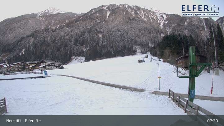 Die Webcam befindet sich in Krössbach bei Neustift - Hochstubai und zeigt das Übungsland des Skigebiets.