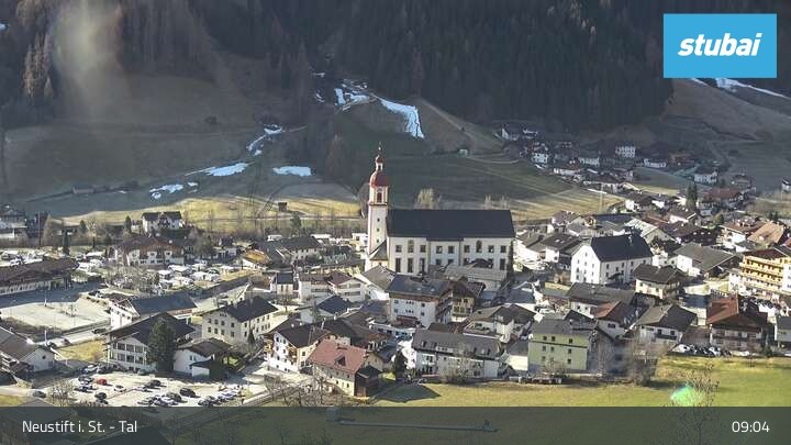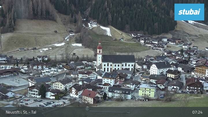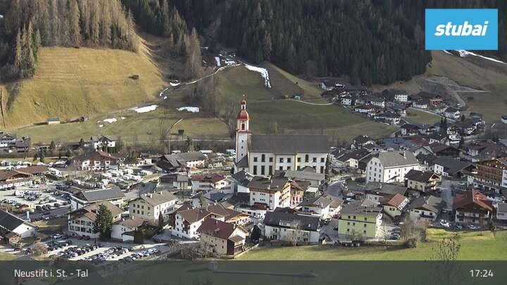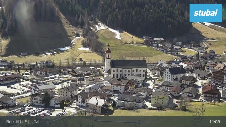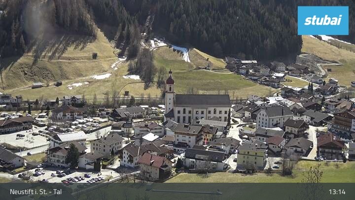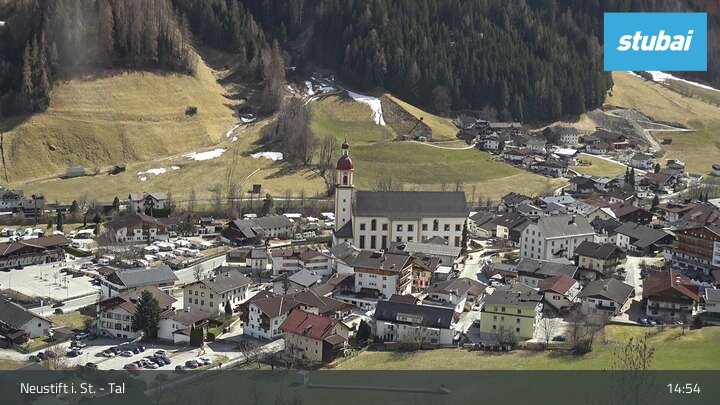 Die Webcam blickt auf den kleinen Ort Neustift im Stubaital.