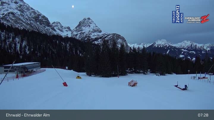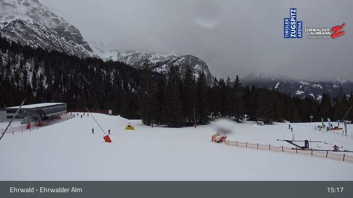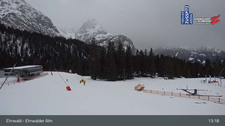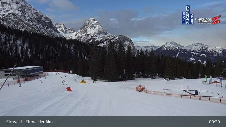 Webcam Sicht auf das Kinderland an der Ehrwalder Alm, 1,491 m