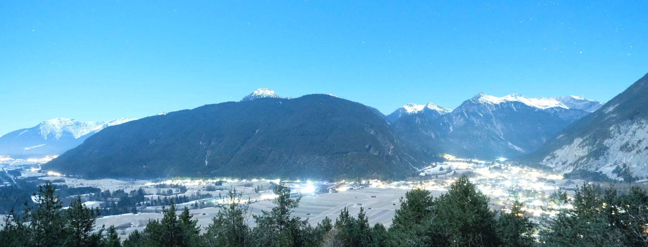 Die Kamera blickt von der Aussichtsplattform an der B189 über Dormitz nach Nassereith am Fernpaß.