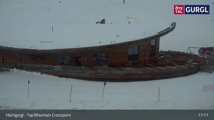 Hier blickst du auf den Top Mountain Crosspoint bei Hochgurgl im Tiroler Ötztal. Es handelt sich dabei um die Mautstation zur Timmelsjocher Hochalpenstraße. In dem Gebäude befindet sich unter anderem auch das höchste Motorradmuseum der Welt.