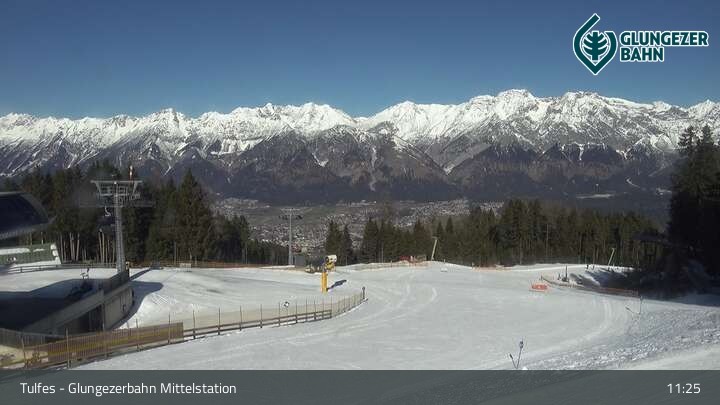 Die Webcam ist an der Mittelstation des Glungezer positioniert und zeigt einen tollen Panoramablick auf das Ski- und Wandergebiet in Tulfes.
