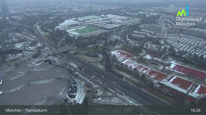 Im nordwestlichen Teil der Münchner Innenstadt befindet sich am Olympiaturm diese Webcam mit dem direkten Blick auf den Olympiapark. Zu sehen sind unter anderem das Olympiastadion und die Olympiahalle, beliebte Orte für Veranstaltungen und Konzerte. Wichtiger Hinweis: Bei großen Veranstaltungen kann es sein, dass die Webcam vorübergehend deaktiviert wird.