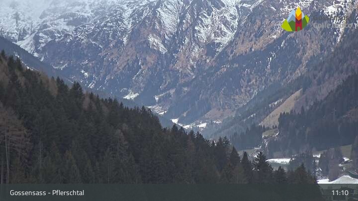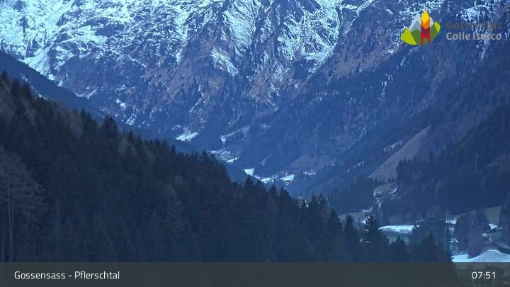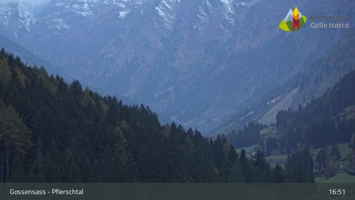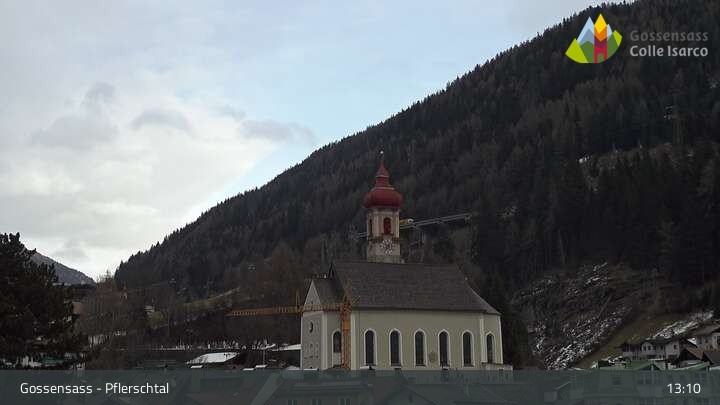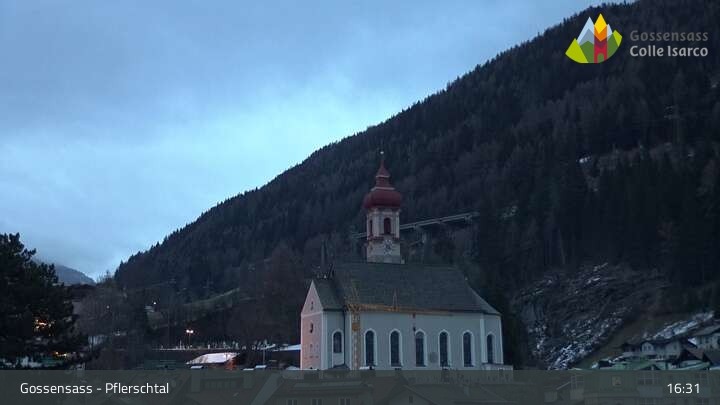 Die Kamera zeigt die Kirche Parrocchia San Valentino in Gossensass im Eisacktal.