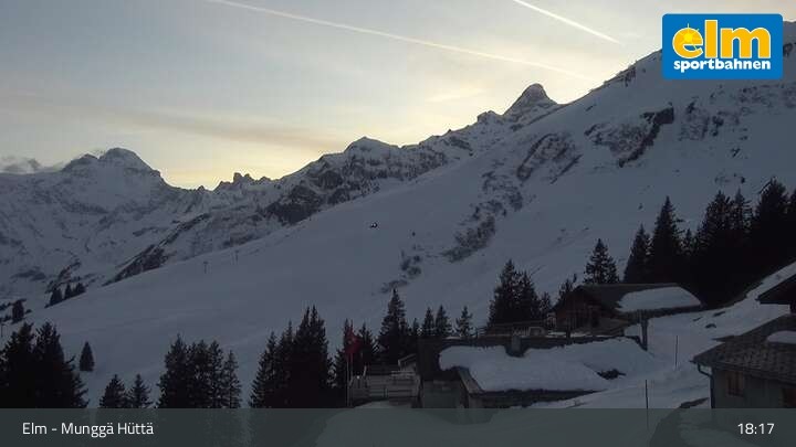 Die Webcam zeigt die Munggä Hüttä in Elm. Im Winter ideal für Skifahrer, Snowboarder und Winterwanderer zum Einkehren geeignet, ist sie im Sommer leider nicht in Betrieb.