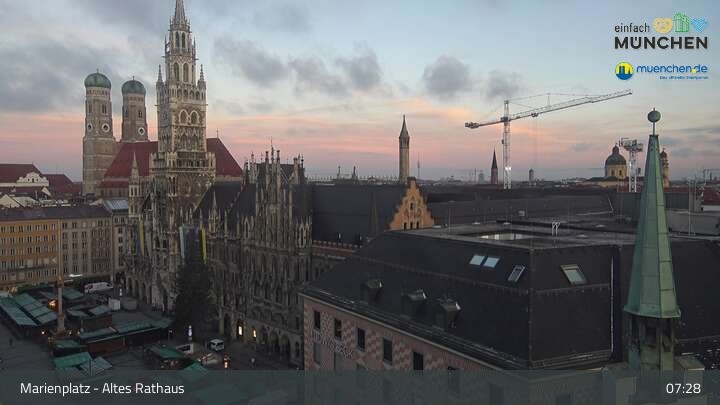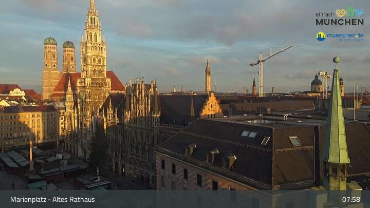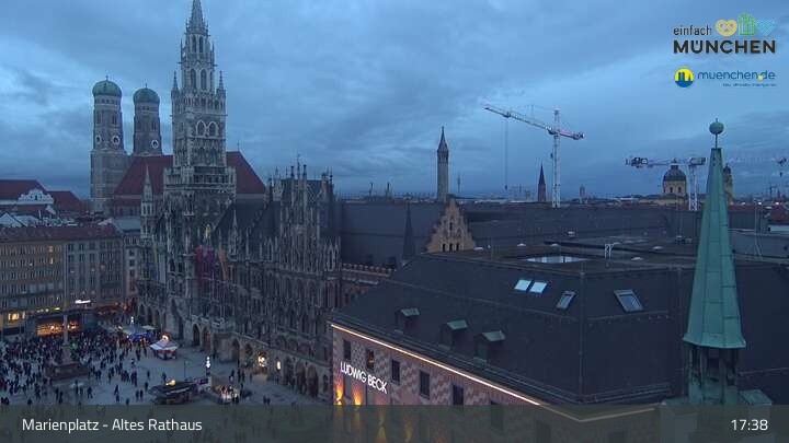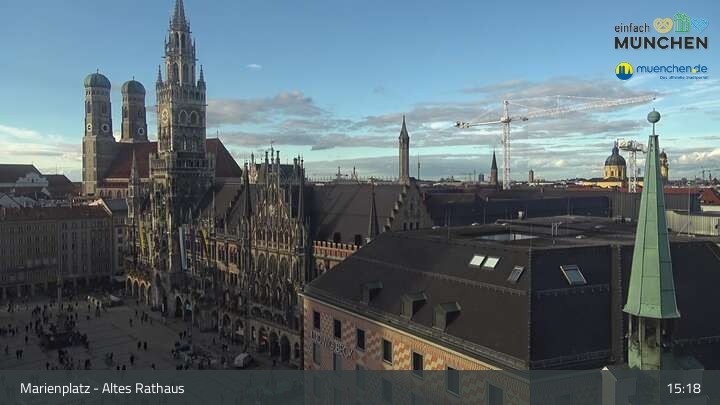 Die Webcam blickt vom Alten Rathaus auf den Marienplatz, der zentrale Platz der Münchener Innenstadt.