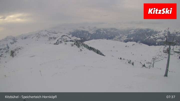 Die Webcam befindet sich auf rund 1.700 m Höhe und blickt auf den Speicherteich Hornköpfl sowie die Kitzbüheler Alpenwelt.