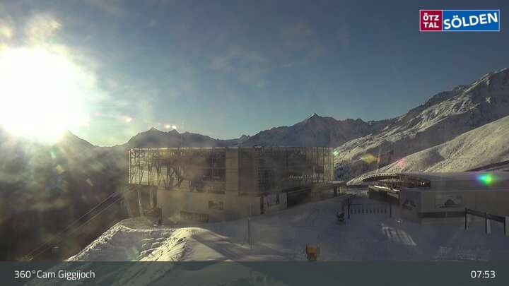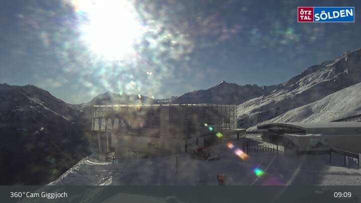 Blick vom Giggijoch auf die Bergbahnen sowie die umliegendeAlpenwelt von Sölden.