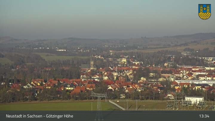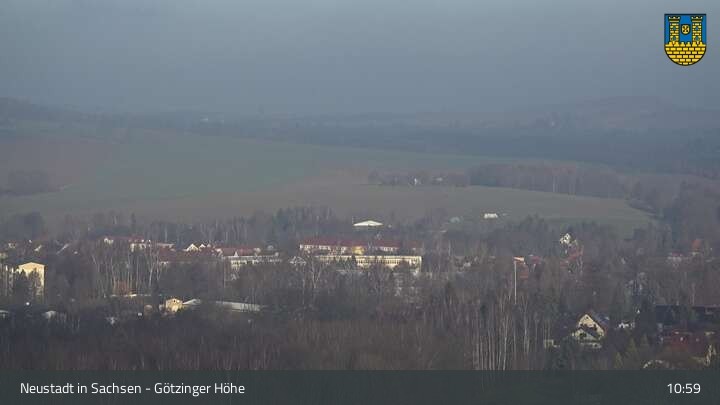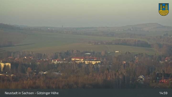 Hier siehst du Neustadt in Sachsen, eine Kleinstadt im Elbsandsteingebirge. Die Webcam befindet sich südlich der Stadt an der Götzinger Höhe.