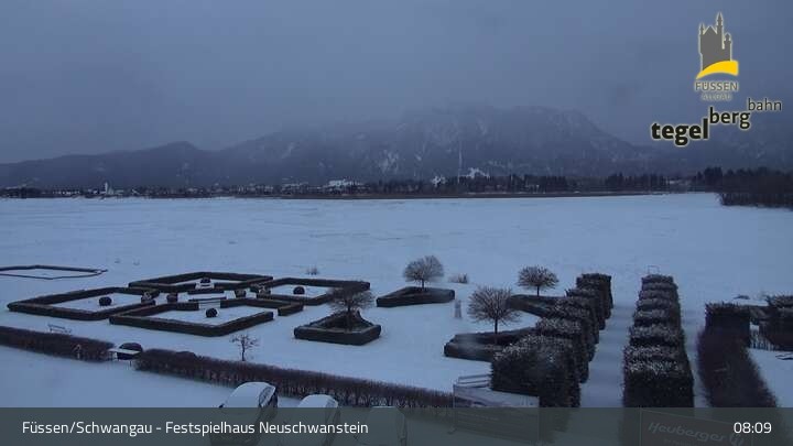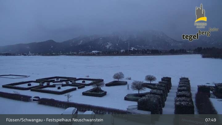 Die Webcam blickt auf den Garten von Ludwigs Festspielhaus in Füssen am Forggensee.