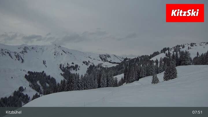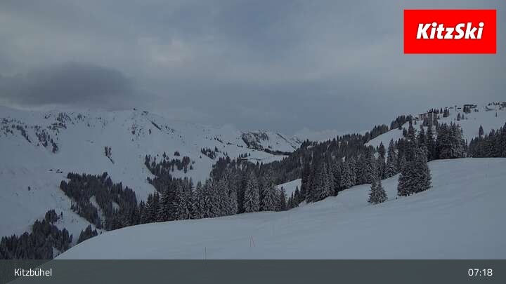 Die Webcam zeigt der den Blick vom Berghaus Walde am Hahnenkamm. Gut erkennen kann man unter anderem die Bergstation der Hahnenkammbahn.