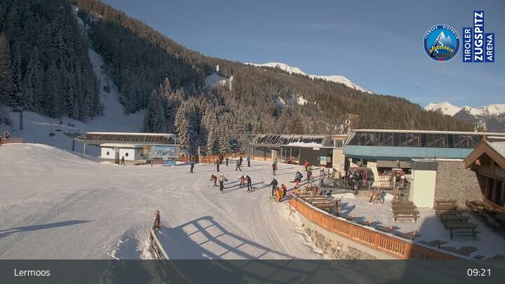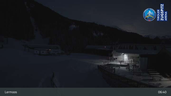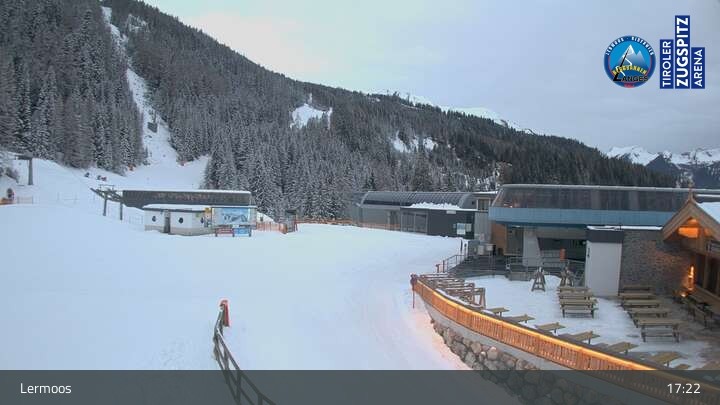 Die Webcam befindet sich an der Bergstation des Hochmoos Express in Lermoos und blickt auf die umliegenden Alpen.