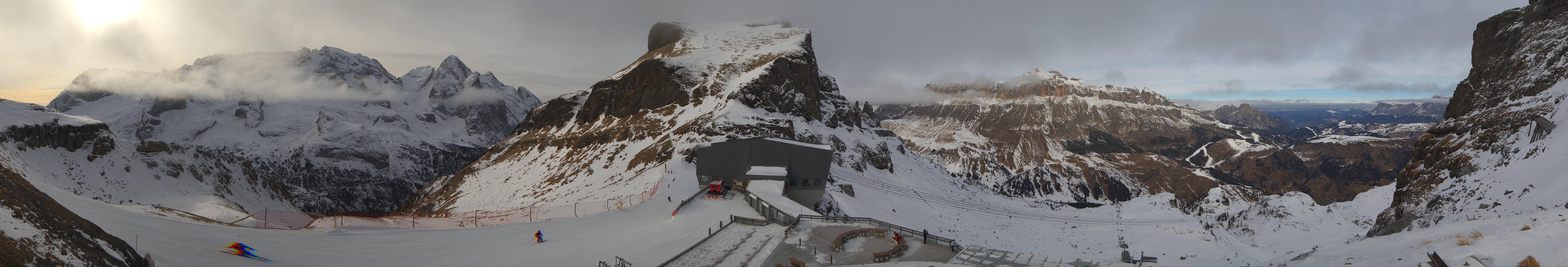 Die Webcam befindet sich an der Bergstation der Porta Vescovo Bahn und eröffnet dir den Blick auf Arabba.