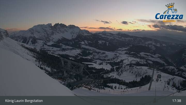 Die Webcam eröffnet von der Kölner Hütte das Panorama zum Latemar. Du siehst hier auch gut die neue König Laurin Gondelbahn mit unterirdischer Bergstation.