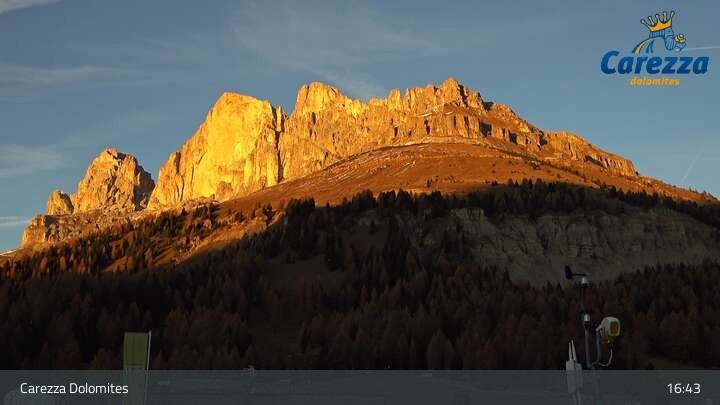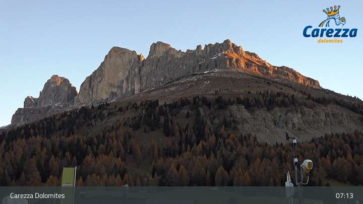 Hier siehst du die Talstation des Sessellifts Pra di Tori sowie die Berge von Carezza