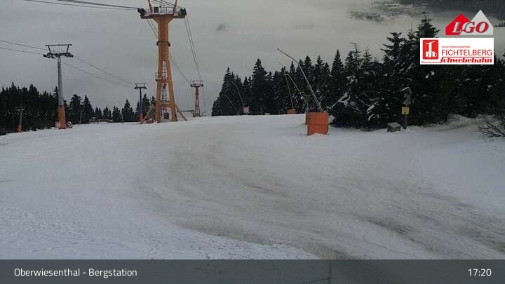 The webcam is located at the top station at the ski resort of Oberwiesenthal Fichtelberg. From there, it looks down upon Oberwiesenthal.