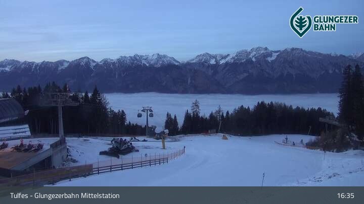 Die Webcam ist an der Mittelstation des Glungezer positioniert und zeigt einen tollen Panoramablick auf das Ski- und Wandergebiet in Tulfes.